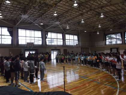 今日は詩の朝会でした。全校で詩を声を合わせて読みました。今月は、4年生が中心となりました。