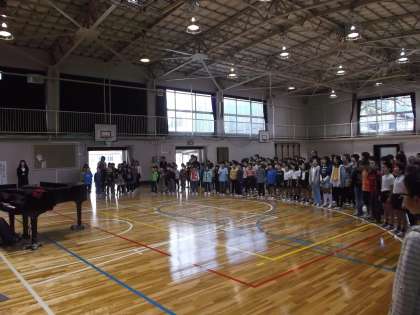 今日の音楽集会では、今年度のNコン課題曲だった「ふるさと」を全校で歌いました。 一人ひとりが、どんな気持ちで歌うかをイメージしながら、うたっていたのがとても印象的でした。