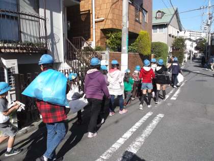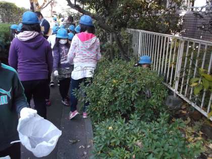 6年生は、ゴミを拾うところまでの移動中、低学年の面倒をみたり、集めたゴミの大きな袋を学校まで運んだりと最高学年の自覚をもって行動していました。