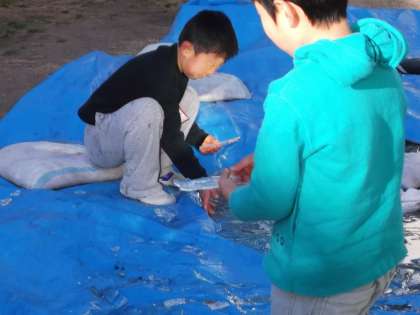 寒い朝でした。水たまりに氷も何か所もできていて、手を真っ赤にしながら、氷遊びをしていました。