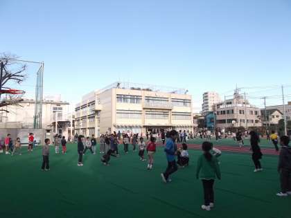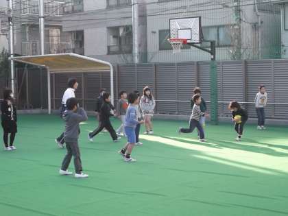 朝は、遊びの時間がありました。冷たい風の吹く中、笑顔いっぱいで過ごしている子どもたちでした。