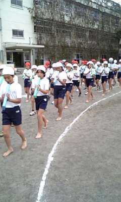 運動会に向けて、初めて駒繋小の校庭で練習することができました。