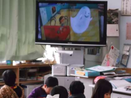 今週は、給食の時間に、図書委員による読み聞かせが始まりました。放送室からテレビ放送で行いました。図書委員はとても緊張していました。