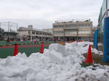 主事さんが月曜日からがんばって雪払いをしてくださったおかげで、今日は朝から校庭を使うことができました。