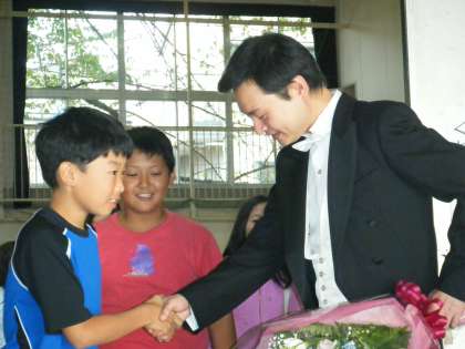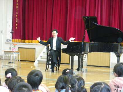 モーツァルトやショパンの曲を聴かせていただきました。一台のピアノから流れ出る様々な音、大きく小さく、強く優しく、表情豊かな音色。中里小のみんなは美しいメロディに心から浸りました。