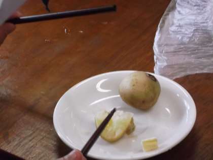 5年生は、家庭科の授業で、じゃがバターを作りました。
