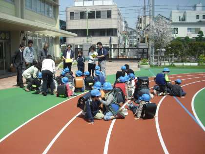 さわやかな春風が吹く中、一年生が方面ごとにグループになって、帰えりました。今日は、学校のきまりやごあいさつの仕方などを学びました。