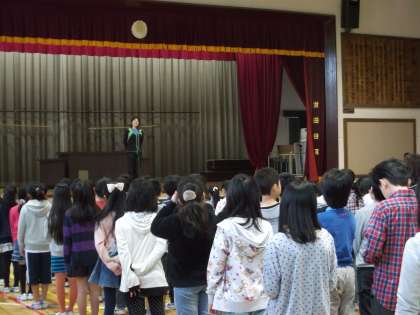 今年度最初の全校朝会がありました。柏原校長先生からは、「気持ちのよい あいさつ」についてお話がありました。今月の人格の完成のテーマは、「あいさつ」です。中里小からあいさつの輪が広がるとよいです。「おはようございます」、「ありがとう」、「いただきます」、「ただいま」etc大切にしていきたい言葉ですね!