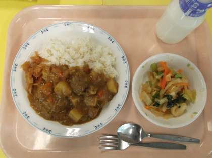 献立 カレーライス 福神漬け 寒天サラダ 牛乳