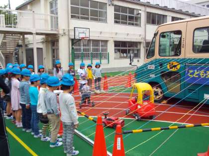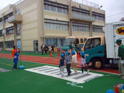 3校時に交通安全教室がありました。1、2年生が、歩行のマナーやルール。車からの死角について、体験を通して学びました。事故にあわないように、みんなで気をつけていきたいものです。今回も、ヤマト運輸さん、PTA校外のお母様方にご協力いただきました。ありがとうございました。