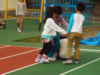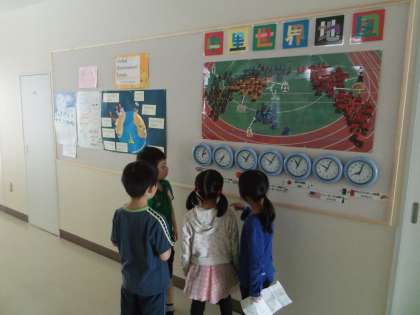 3,4校時は、2年生が1年生を学校探検に案内しました。ついこの間まで1年生だった2年生のみんなは、弟や妹ができたとばかりに、はりきって案内をしていました。最後は、1,2年生の一緒のグループで遊びを楽しんでいました。先生に教えてもらった「かごめかごめ」(写真参照)を楽しんでいる子たちもいて微笑ましかったです。