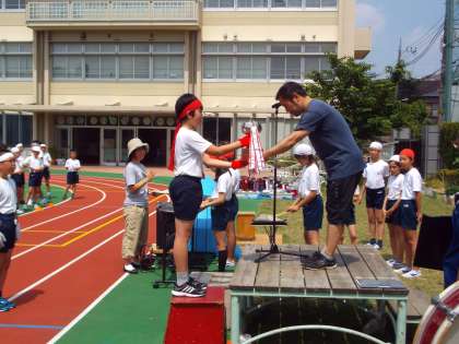最後の全校練習でした。はじめの言葉は1年生の担当です。今日は流れだけの確認です。どんなことを言ってくれるか当日が楽しみです♪閉会式では、優勝杯、準優勝杯の授与もあります。優勝は、赤か・・・白か・・・