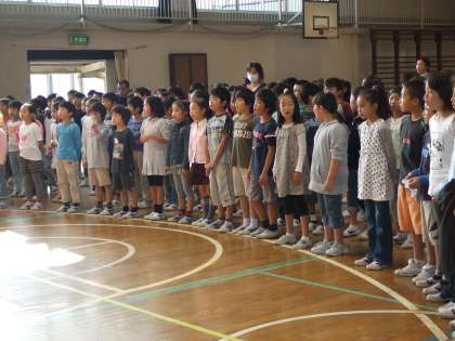 気もちをあわせたみんなの歌声は体育館中にひびき、気もちの良い朝となりました。