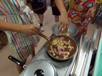 6年生が家庭科学習で朝食を作りました。ご飯を鍋で炊いたり、お味噌汁を作ったり、ベーコンや卵を焼いたり・・・是非、家でも挑戦してほしいですね!