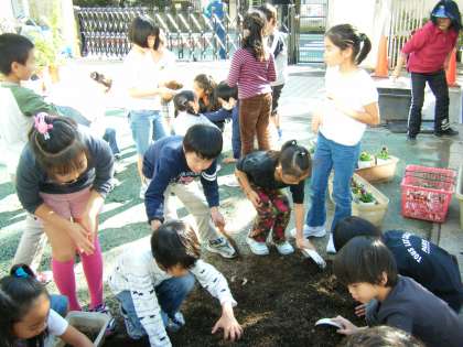 栄養のある土にするために、ミミズもいっしょに鉢に入れました。