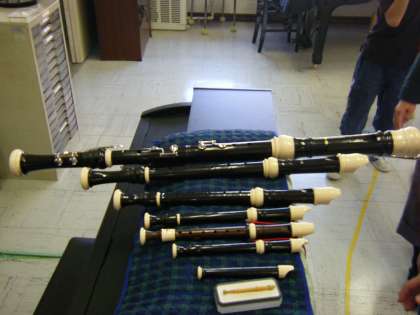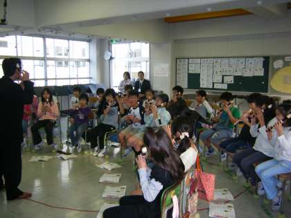 リコーダーを上手に吹くための、3つのひけつを教えてもらう3年生。