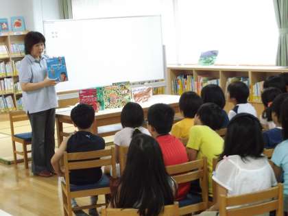 「三匹の子ブタ」の紙芝居や、「エコでござる 江戸に学ぶの巻」などを紹介してくださいました。読書の輪が広がるとよいです!!ありがとうございました。