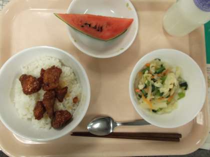 献立 かつおの揚げに丼 みそドレサラダ 牛乳