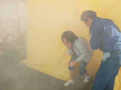 訓練の後に、3年生と5年生が煙ハウスを体験しました。「煙で前が見えなかった。」「とても苦しかった。」「障害物があって、歩きにくかった。」と煙の怖さを実感していました。