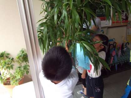 来週の月曜日は七夕です。中里小では、毎年近隣の方から笹をいただいています。思い思いの願いを短冊に書きました。副校長の願いは、中里小にかかわる方々全ての健康と安全。そして家族の安らぎ・・・どうか、叶いますように!!