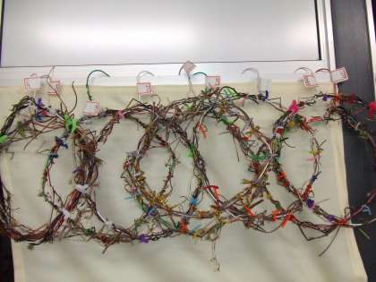 ハンガーを丸めて蔓をからませ、リースを作りました。これから、さらに飾りをつけて仕上げます。すてきなリースになりそうで、わくわく・・・どきどき・・・。学校公開時に掲示しますので、どうぞご覧ください。