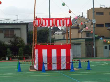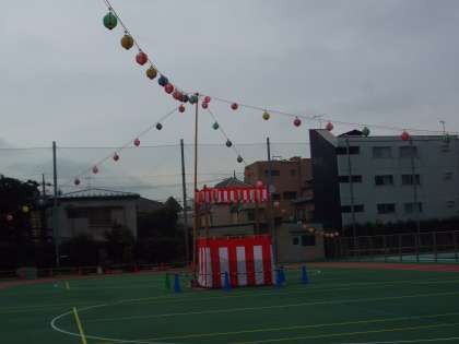 いよいよみんなが楽しみにしていた「中里納涼こども祭り」の日です。グランドには、すでにやぐらが立っています。昨日の午後からPTAや地域の方の協力で完成しました。天候が気になりますが、みんなで盆踊りが踊れるとよいですね!!たくさんの方々の来校をお持ちしています。先生たちのつくった焼きそばもあるよ!