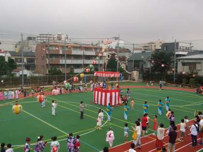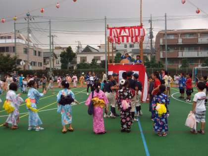 子ども祭りのメインイベント。6年生の太鼓のリズムで中里音頭やドラえもん音頭などを踊りました。円の中心には地域の方々が浴衣に身を包み見事な踊りを披露してくれました。中里の子どもも大人も一体になった瞬間でした。ありがとうございしました。