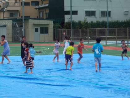 今日は海の日ですね。それでかどうか、遊び場開放委員会の方々の楽しい企画がありました。水鉄砲をしたり水遊びをしたり・・・とっても楽しそうでした!!
