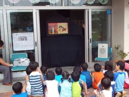 毎月恒例のお話し会がありました。普段は第3土曜日なのですが、今回は遊び場開放とのコラボレーション。たくさんの子たちが大きな紙芝居を楽しんでいました。ありがとうございます。