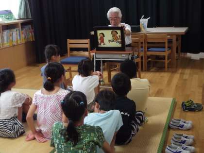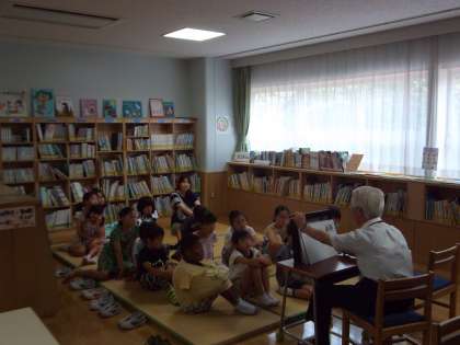梅雨明けの便りがあり、まさに夏!!といった天気になりました。図書開放では、地域の方の紙芝居をしてくださいました。20人近くの子どもたちが参加していました。明日もありますので、たくさんの参加を待っています!9時〜始まります。また、プールでも元気な子どもたちの声が響いていました。