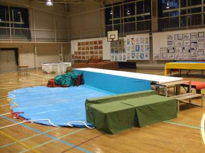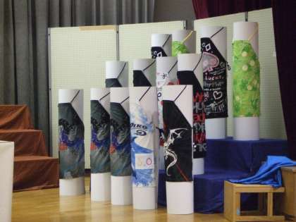 11月16日(月)に6年生が体育館に展覧会の展示台を運んでくれました。ひな段や図工室の机・卓球台などの上に、先生方で展示用の布をかぶせました。いつもの体育館が少しずつ「中里ぎゃらりぃー」に変身していきます。