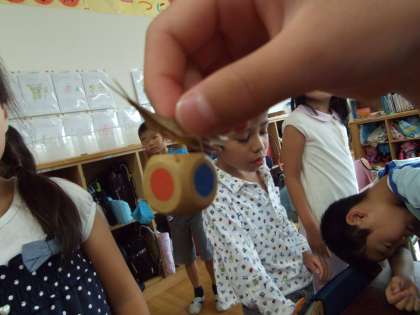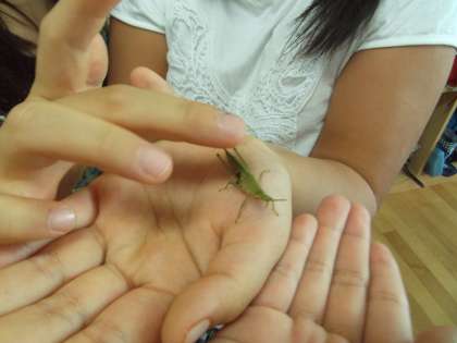 2年生の教室でバッタが元気に跳んでいました。中には、サイコロを持つバッタも!!(写真2枚目)来週は、多摩川で虫探しもあります。子どもたちの喜ぶ顔が楽しみですね♪