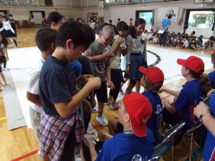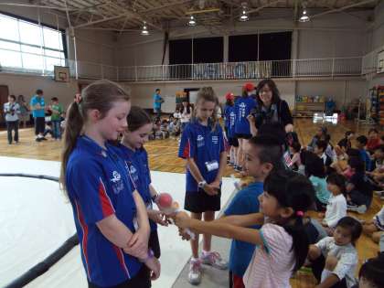 中里小から剣玉をプレゼントしました。中里の誇る剣玉名人が技を披露しました。なかなかの腕前でした!バンバリーの子たちもびっくりしていました。