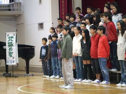 また最後には4.5.6年生全員で「地球の歌」を歌いました。声の重なりを感じて歌えるようにみんなで心を一つにして声をひびかせました。