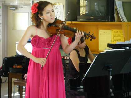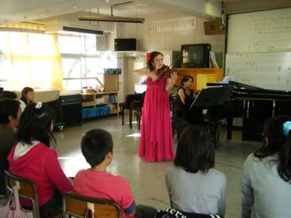 11月4日(金)にローザ・ロッサのお二人、野間さんと角田さんが来校して、5年生に演奏してくださいました。楽器はヴァイオリン、ヴィオラ、ピアノです。間近で聴く弦楽器の響きと美しい音色にみんなくぎづけです。