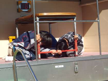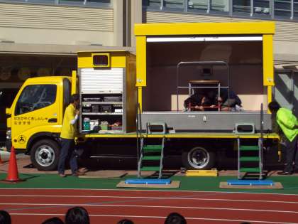 今月の避難訓練は、地震後に火災が起きた想定で、防火扉を使って避難する訓練をしました。同時に、4年生全員と各学年の代表児童による起震車体験も行いました。