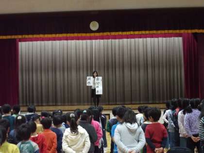 学芸会明けの全校朝会では、校長先生から学芸会を振り返っての講話がありました。今週の生活の話では、元気に外遊びをしよう!という話がありました。