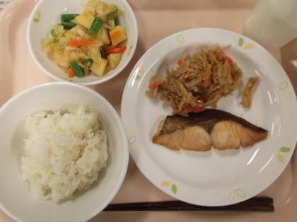 献立 ご飯 魚のみそ照り焼き 切干大根の煮物 じゃが芋のサラダ 牛乳