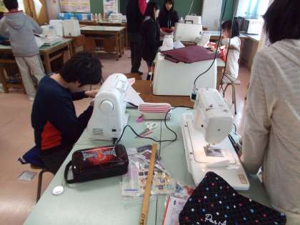The last day of the "grade by grade" features 6th graders in the home economics. Each students is making a bag with a sewing machine. I hope they will treasure their bags for a long time.