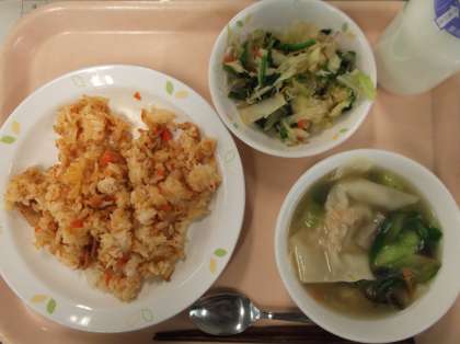 献立 キムチチャーハン ワンタンスープ じゃこサラダ 牛乳