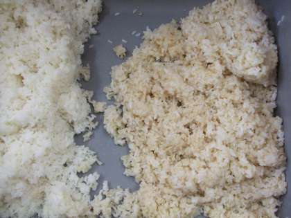 写真の左側が給食の白米、右側がバケツ稲で収穫した玄米です。みんな自分で育てた玄米を美味しそうに食べていました。「ちょっと固いけど、美味しい!」と大好評でした。