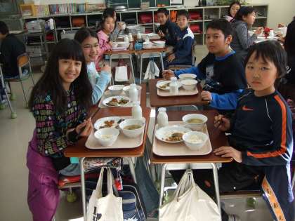 12月21日(月)にバケツ稲で収穫したお米を給食のご飯と一緒に試食しました。5月1日に種もみをまいてから10月上旬の稲刈りまで、約半年間大切に育ててきました。収穫した稲を脱穀して精米し、やっと食べることができました。