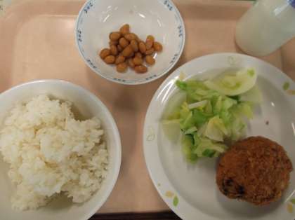 献立 ごはん 肉じゃがコロッケ ひとしお野菜 ぶどう豆 牛乳