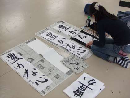 3〜6年生は「点画の筆使いや字形や文字の大きさ、字配りなどに注意して書くこと」を目標に毛筆書き初めに取り組んでいます。