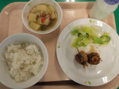 献立 ご飯 いわしの揚げ煮 野菜のひとしお 塩肉じゃが 牛乳
