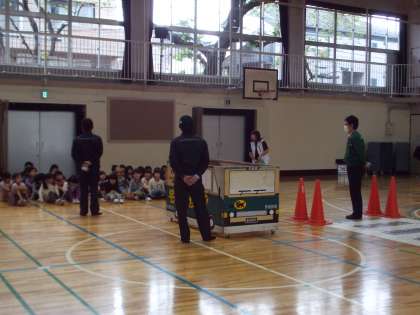先週の3〜6年生に続いて、1,2年生も交通安全教室がヤマト運輸さんの協力で行われました。残念ながら雨が降り出したので、体育館での教室となりました。最後は、実際に配達で使われている車に乗せてもらい、運転席から死角になる場所を確認しました。本当に事故は怖いので、お互いに声をかけあって気をつけましょう。