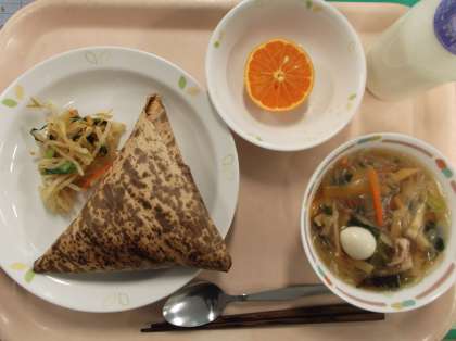 献立 中華ちまき 春雨スープ 野菜のバーベキューソース くだもの 牛乳