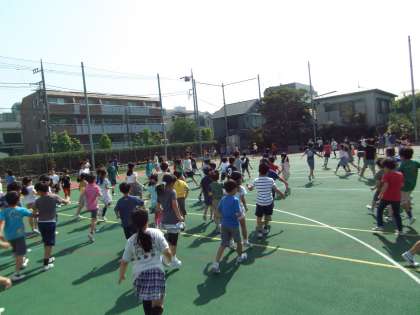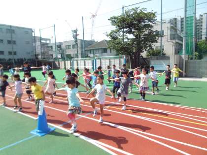 今週もありました。わくわく中里タイム!!まずは、目を閉じて片足バランス。そして非対称運動。だれともぶつからないようにギャロップで走りました。