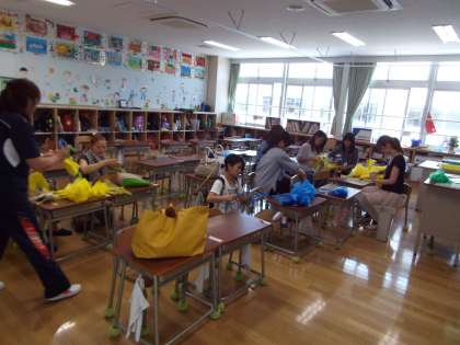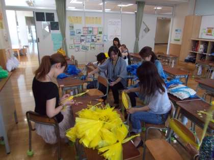 運動会で行う低学年の表現は、全員ボンボンをもちます。今日は、8人のお母さんがボンボン作りに来てくれました。ボンボン職人って感じでした!ありがとうございました。