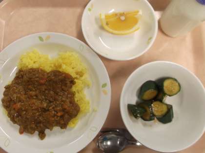 献立 エリンギのキーマカレー コーンポタージュ もやしサラダ 牛乳